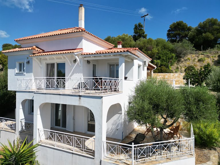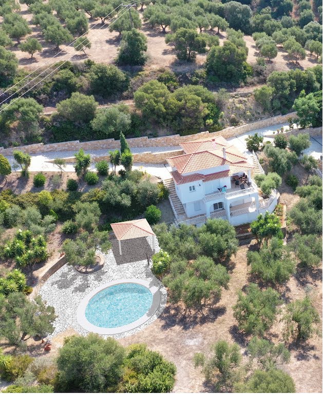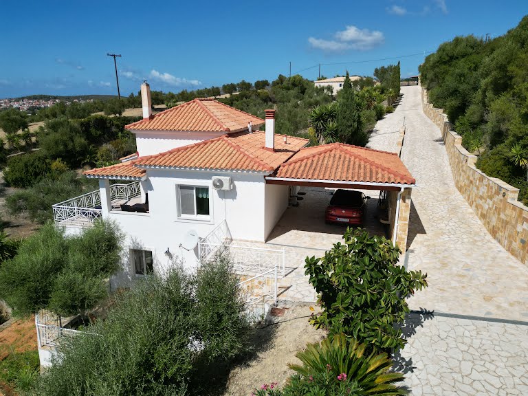 Eine sehr gut ausgestattete Küche, Esstisch mit 4 Sessel. Ein Wohnzimmer mit einer auf ein breites Bett ausziehbares Sitzgarnitur, Schlafzimmer mit Doppelbett, Bad mit Dusche und WC und einer Waschmaschine. Schlafzimmer und Wohnzimmer sind von der Küche aus getrennt begehbar. Auf dieser Ebene kommt man zu dem Poolgarten mit einem herrlichen sieben Meter im Durchmesser messendem runden Swimmingpool mit einer Schattenspendenden Pergola. Dieser Pool und Garten (Olivenhain) steht den Mietern des Ferienhauses „Vrisoules“ natürlich exklusiv zur Verfügung. Der nahe gelegene Strand ist Fußläufig in ca. 10 Minuten erreichbar wobei die meisten Gäste die vielen Traumstrände in dieser Gegend mit dem eigenen Fahrzeug erkunden. Bettwäsche, Handtücher vorhanden. Badetücher sind selbst mitzubringen. Kostenloses Wlan mit funktionalen Einschränkungen (ortsbedingt) vorhanden. Parkplätze am abgeschlossenen Grundstück vorhanden. Bitte beachten sie das dieses Haus ein Nichtraucherhaus ist, da wir unseren Gästen natürlich eine angenehme Atmosphäre auch im Inneren bieten möchten.